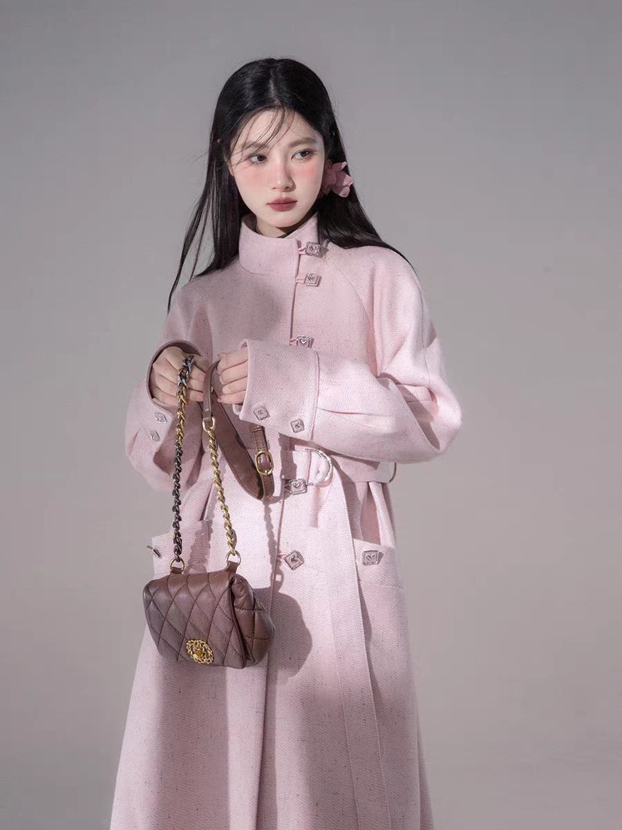 Hatsumoku Pink Chimney Collar Small Chanel Mid-Length Coat
