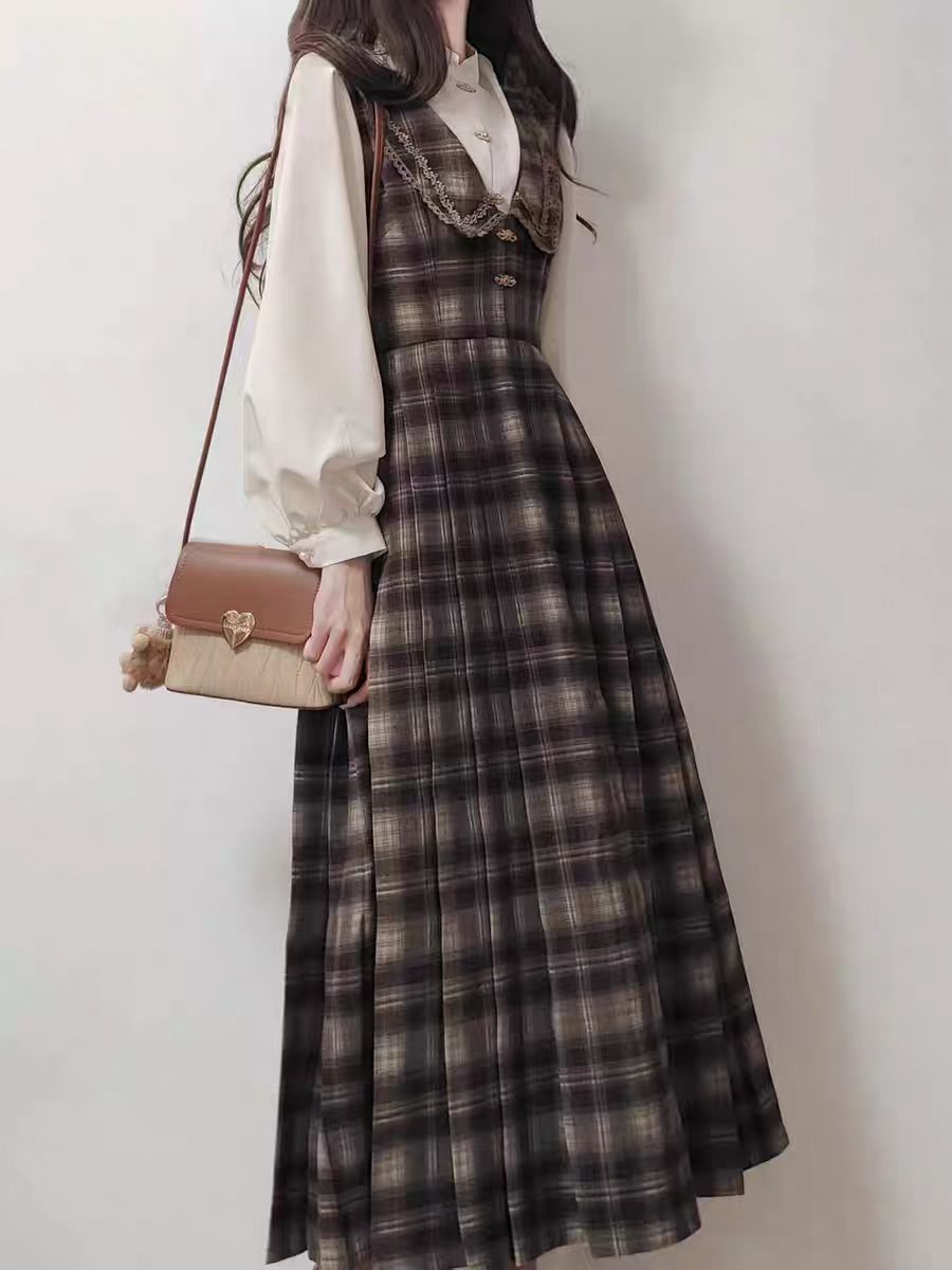 Girl's Never Island Original Ginkgo Ci New Chinese Style Elegant Long Coat Dress Shirt Suit Autumn