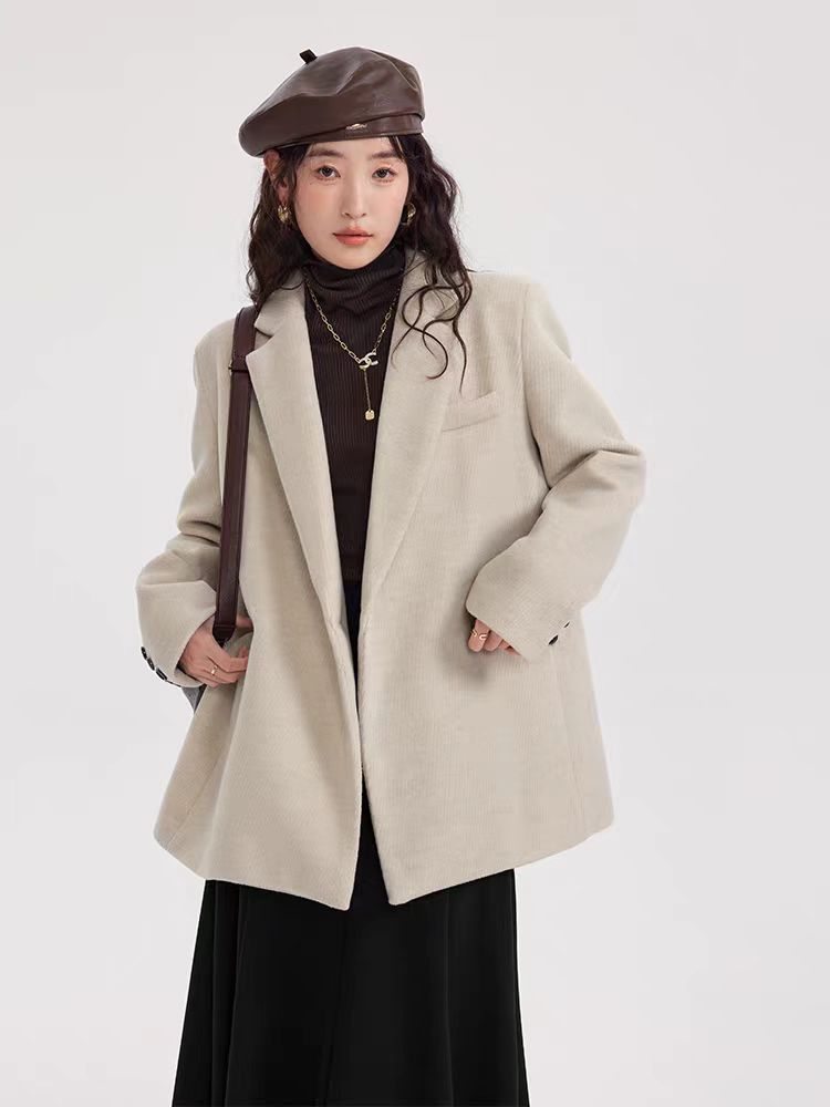 Suit jacket women's new winter straight shoulder long sleeve coat