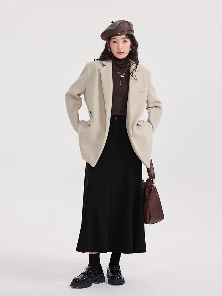 Suit jacket women's new winter straight shoulder long sleeve coat